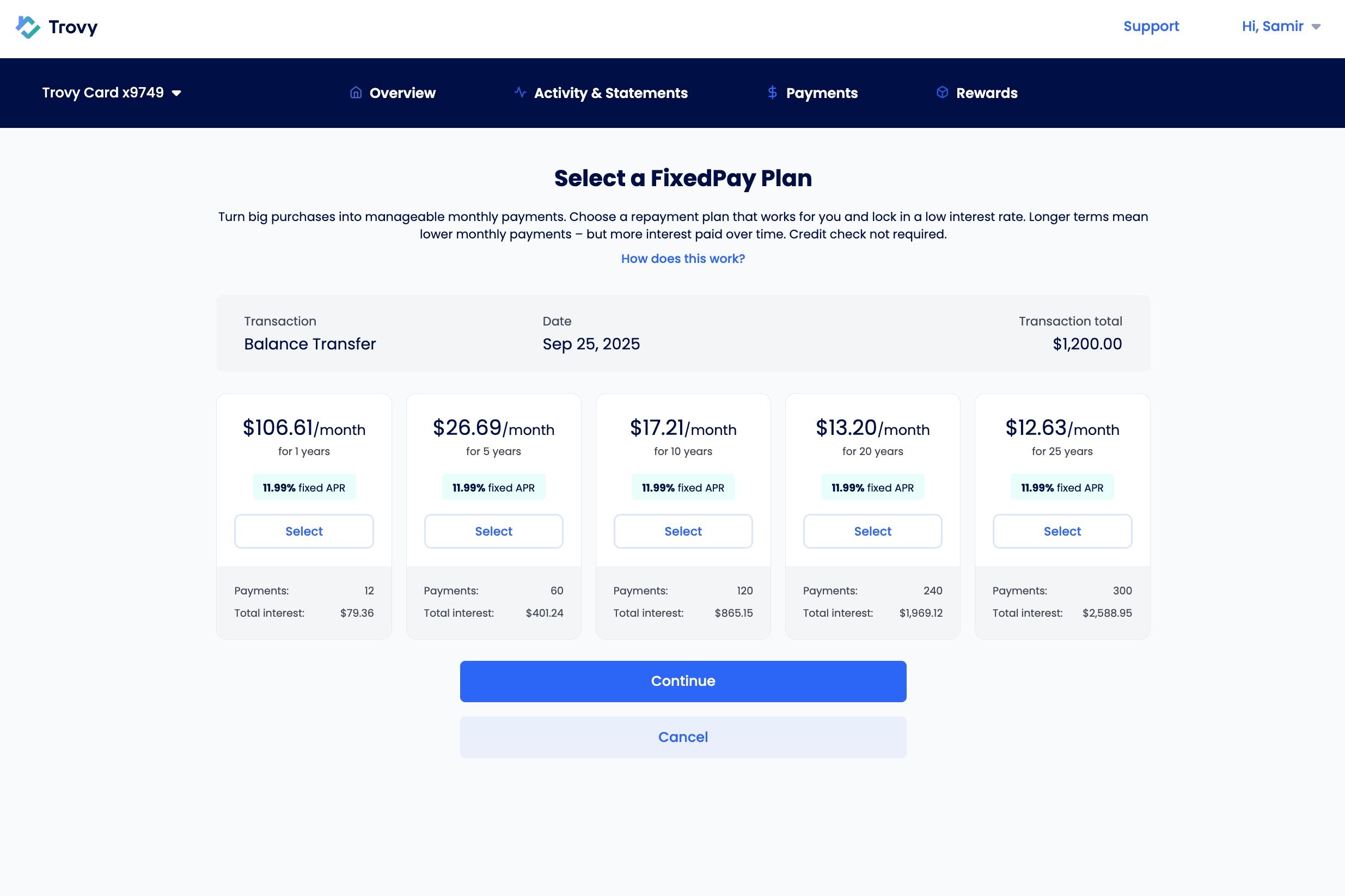 With Trovy FixedPay, customers can convert any Trovy HELOC transaction or balance (of at least $100) into a fixed-rate installment loan over a repayment term of their choosing.